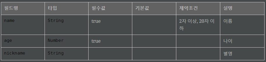 단, 이대로 사용하면 name이 필수값인지, 어떤 제약조건이 있는지 알 수 없다.