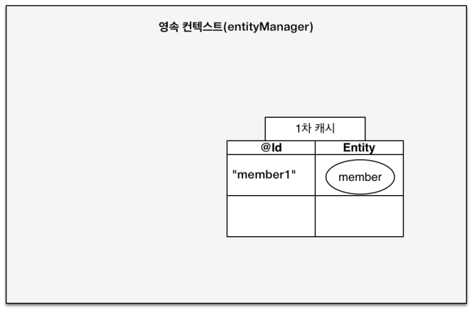 영속성 컨텍스트는 내부에 캐시를 가지고 있는데 이를 1차 캐시라 한다. 영속 상태의 엔티티는 모두 이곳에 저장된다.