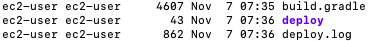 을 가지고 다시 한 번 배포를 진행하면 CodeDeploy를 이용하여 배포한 모든 파일과 디렉터리의 소유자 이름과 그룹이 ec2-user로 변경된 것을 확인할 수 있습니다.