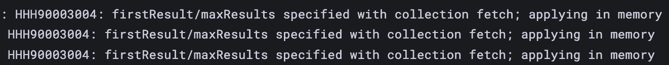 일대다 컬렉션에 대한 페치 조인과 페이지네이션을 함께 사용하는 경우 다음과 같은 로그를 확인할 수 있습니다.