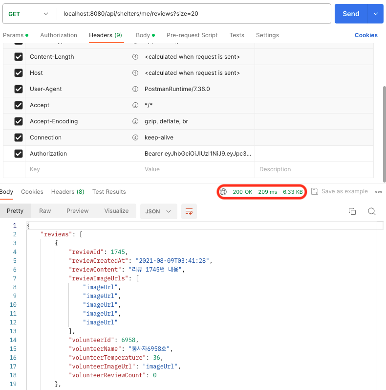적은 차이이지만 이보다 불필요한 컬럼이 많이 포함되어 있거나 다량의 조회가 발생하는 api인 경우 더 의미있는 차이를 확인할 수 있을 것입니다.