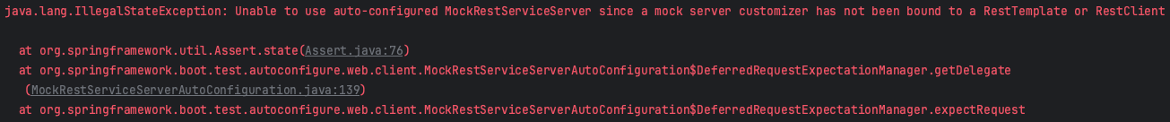 }만약 bean 내부에서 별도로 RestClient를 구성해서 사용하는 등의 이유로 RestClient.Builder를 사용하지 않는다면 MockRestServiceServer와 RestClient가 바인딩되지 않아 사용할 수 없다면서 예외가 발생하게 됩니다.