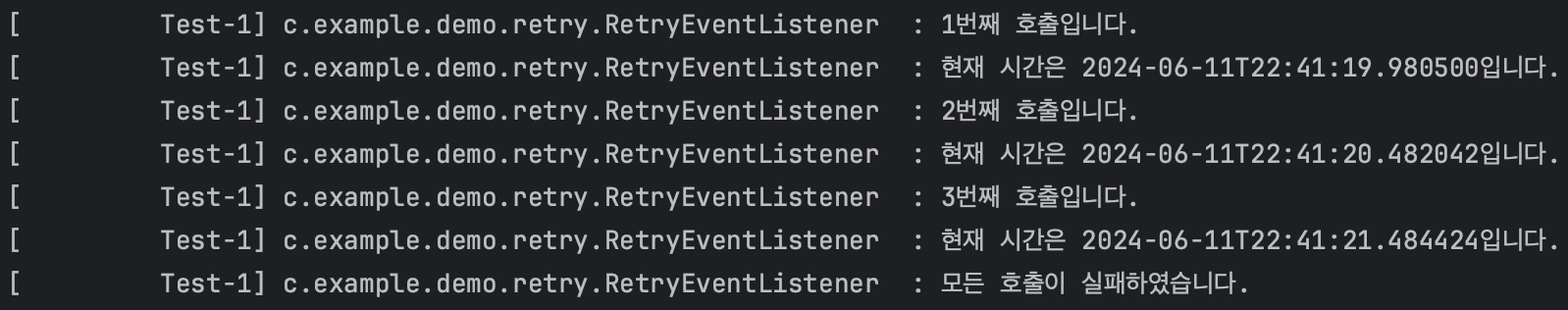 @Retryable // <--기본값은 3회 호출 시도(최초 호출 포함)